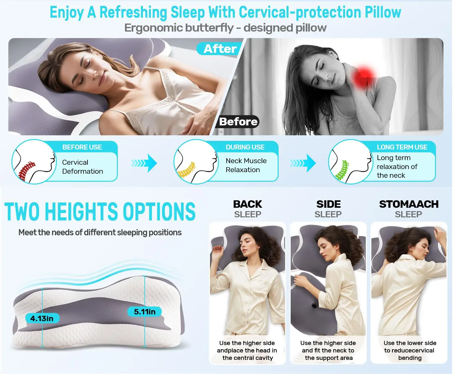 Versatile for All Sleepers: Perfect for back, side, and combination sleepers.