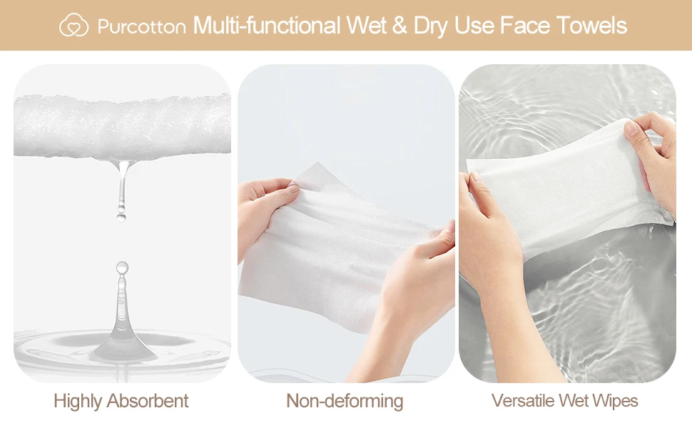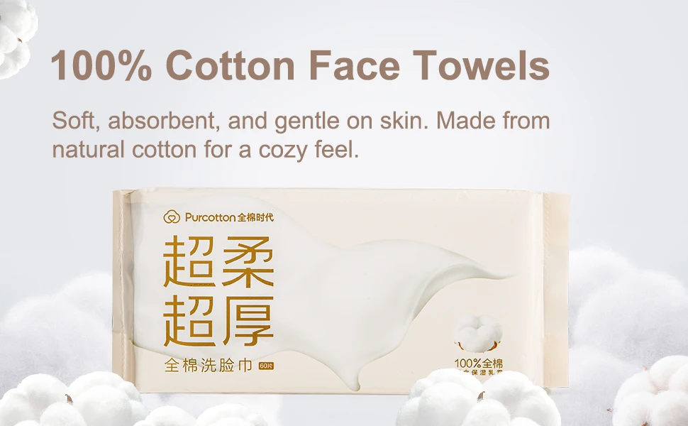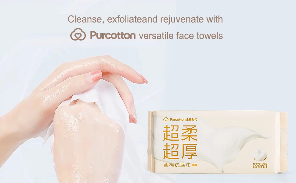 Purcotton Disposable Cotton Face Wipes – 60pc Pack