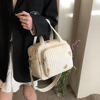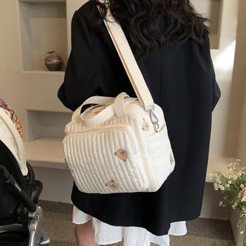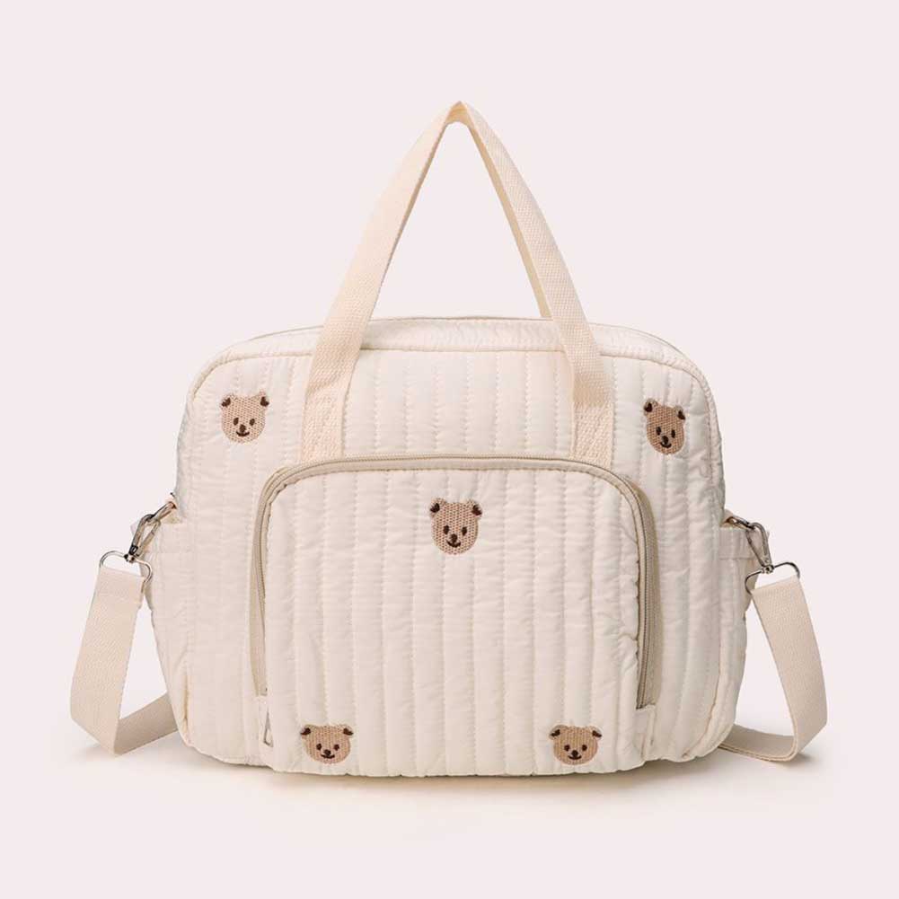 Meet your new favorite maternity companion: the Quilted Bear Flower Mommy Diaper Bag. This versatile tote can be worn as a crossbody or carried as a handbag, and it’s spacious enough for all baby essentials : diapers, bottles, wipes and more. Made of durable cotton with quilted detailing and an adorable bear-flower design, it also features multiple interior and exterior pockets for organization. The adjustable strap ensures comfortable carrying whether you’re out for errands or attending appointments. Stylish, functional, and built for moms on the move.