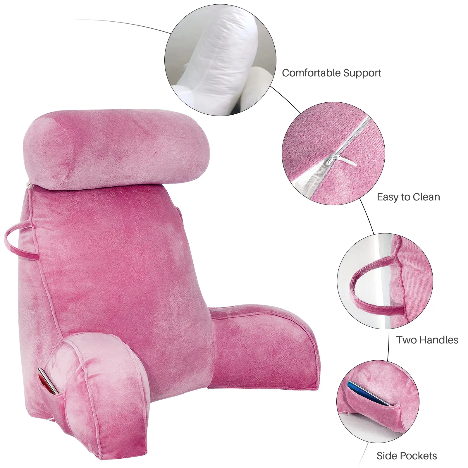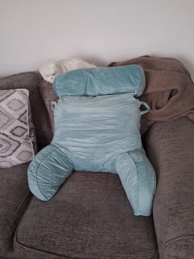 I love my velour cushion .well made product.lovely colour. Good support for my back.nice head rest.best if all you can Take the cover off to wash.all in all i'm very pleased with my purchase. I would recommend for others to purchase this.