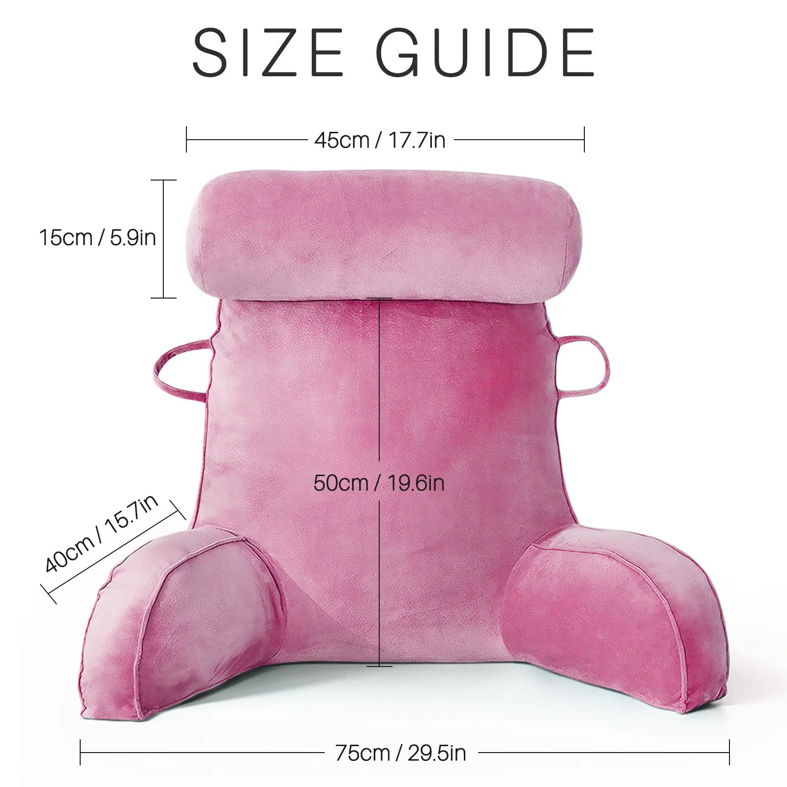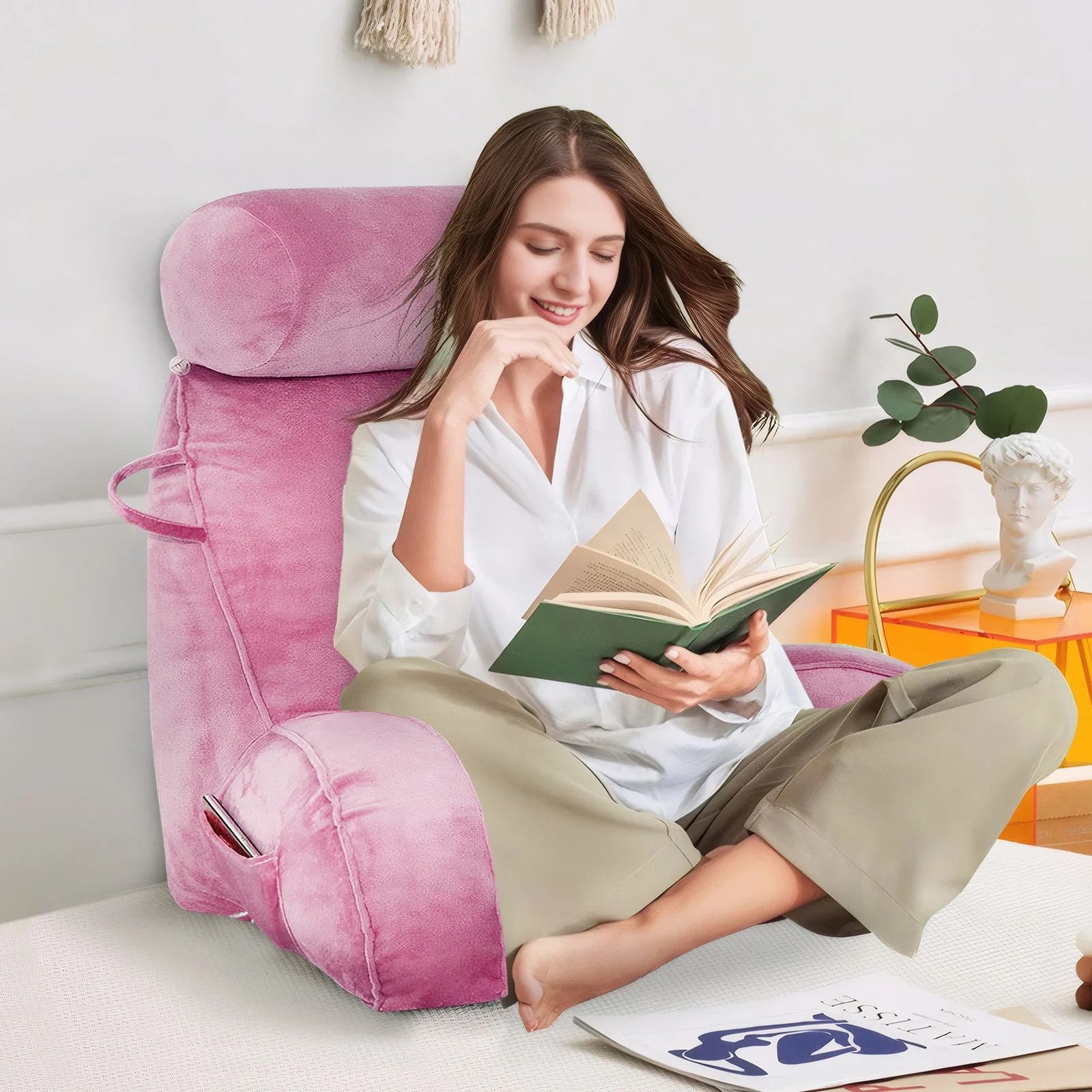 Comfortable triangular reading pillow with supportive backrest for bed. Perfect for reading, watching TV, and lounging. Removable washable cover included.